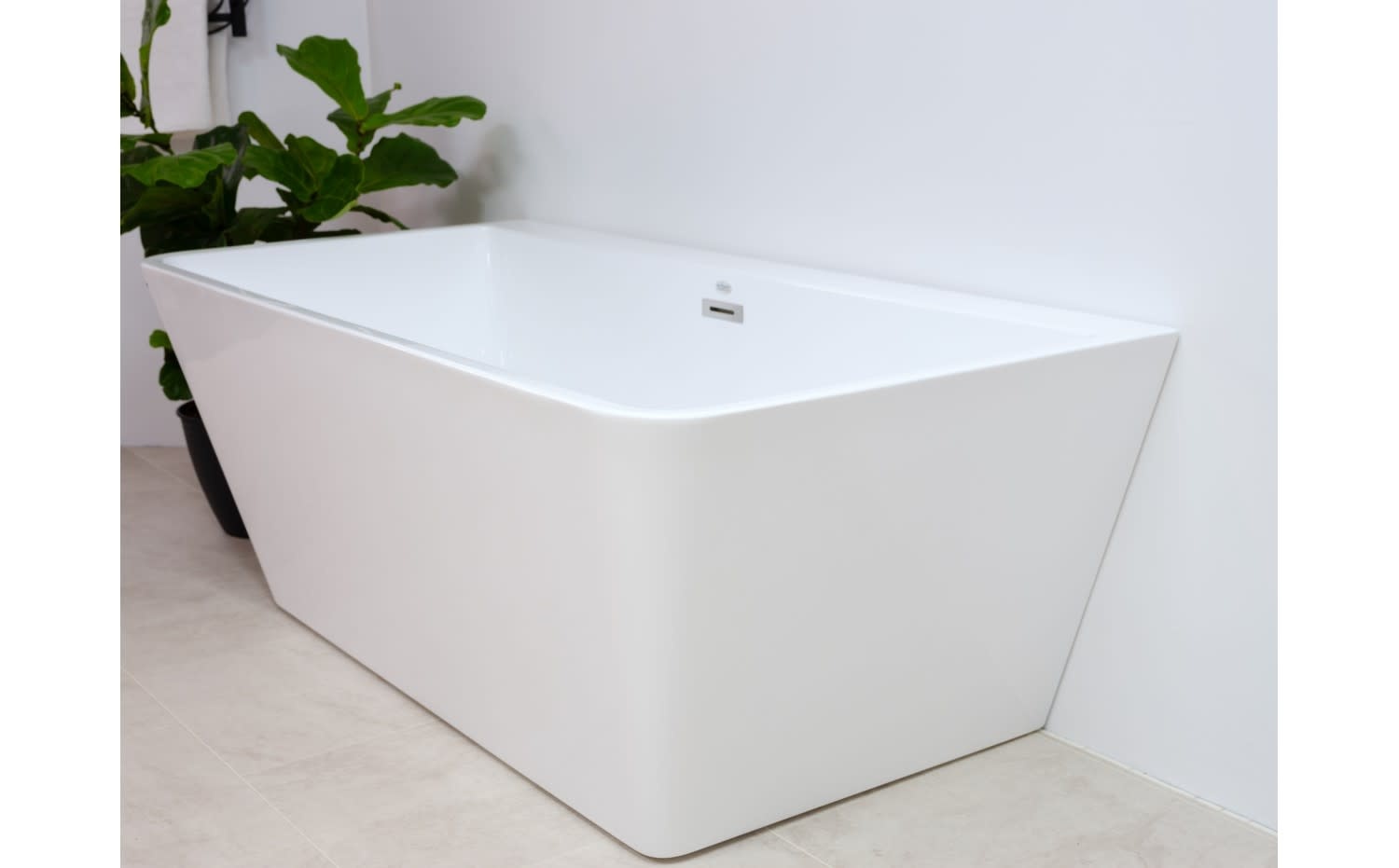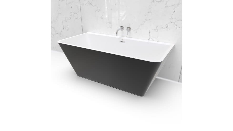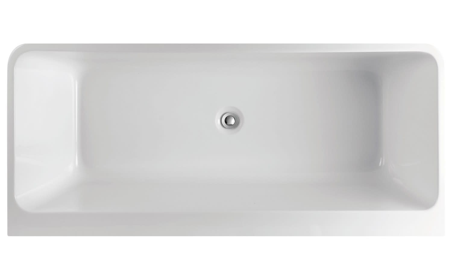 - Drain et trop plein en chrome inclus, situés au centre du bain