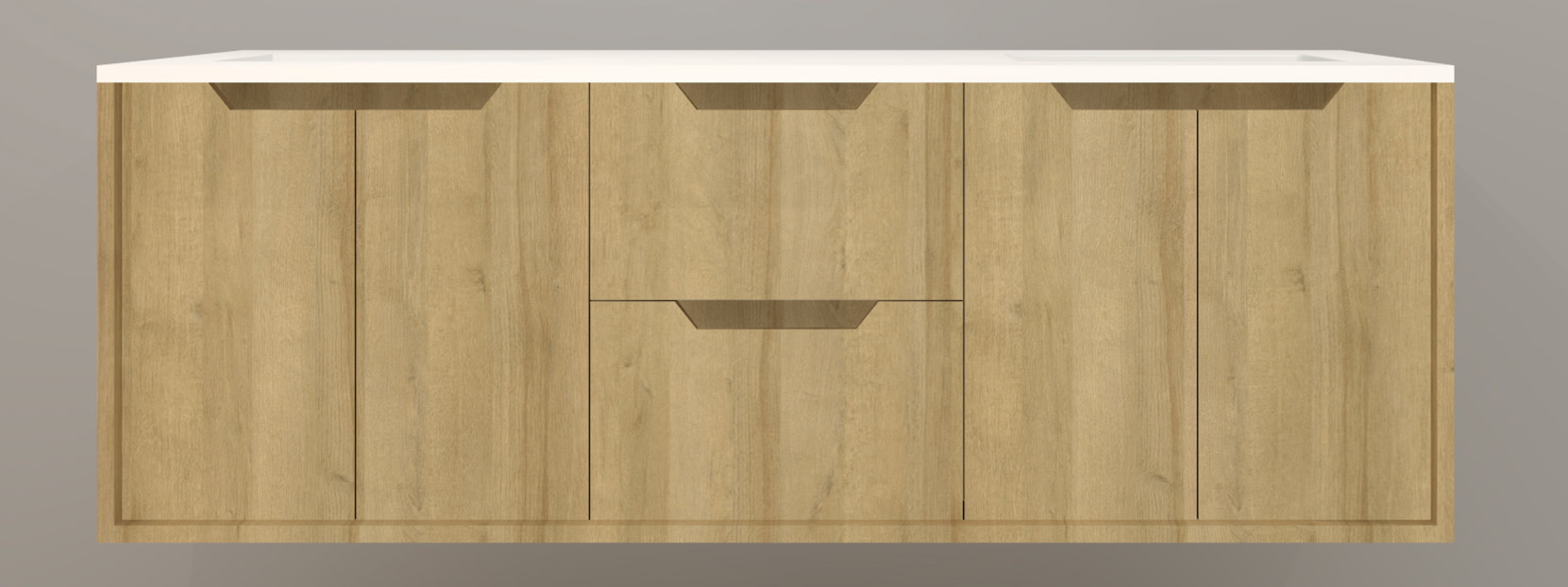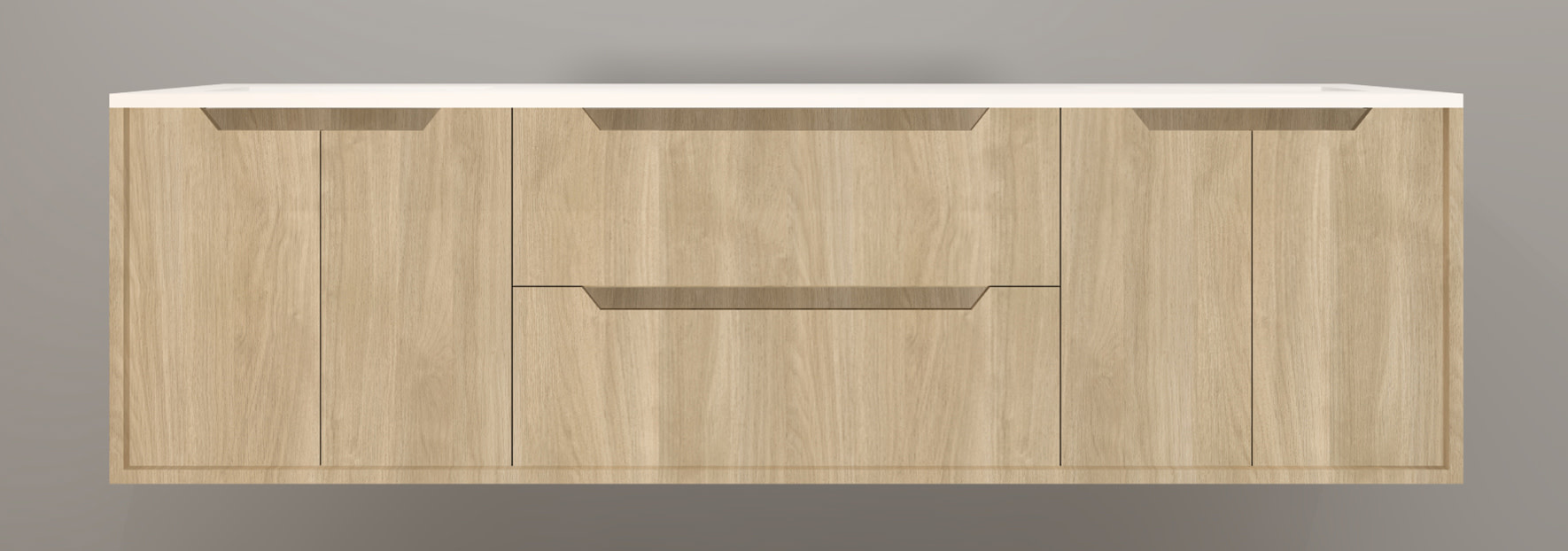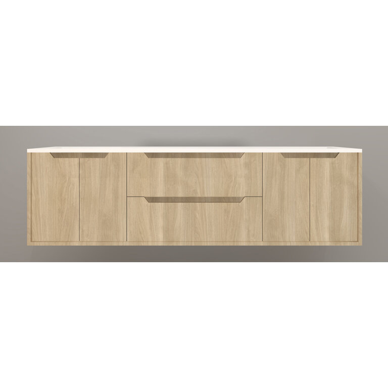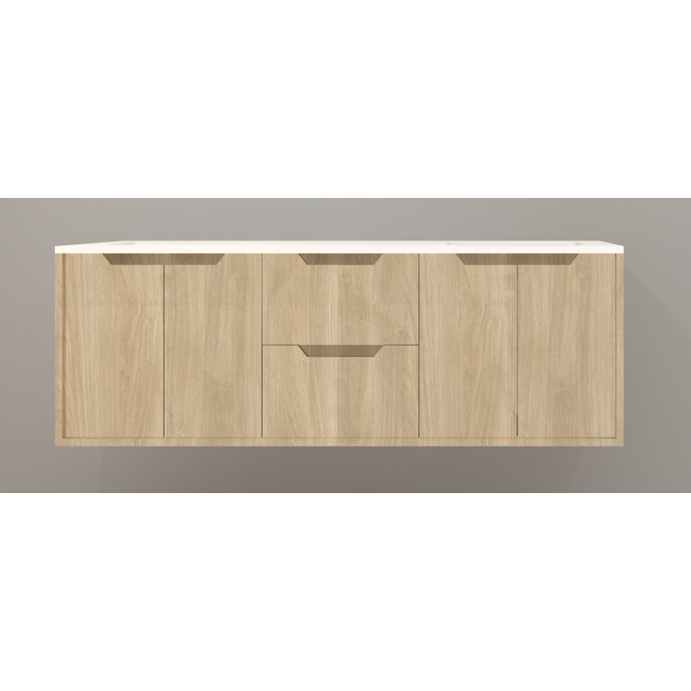 - Inclus 2 lavabos blancs sous-plan en porcelaine.